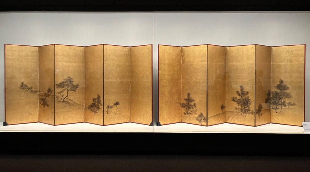 展示室の中央に据えられているのは、円山応挙の《若松図屏風》。金地に墨で若松が描かれており、新年(を迎える)に相応しい作品。瀟洒ながら目出度い一作。